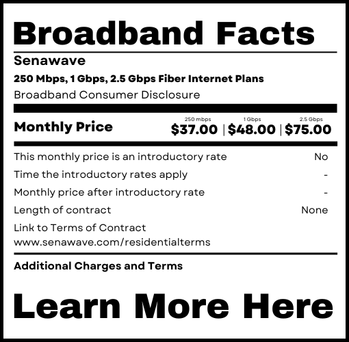 Know what you’re getting when you sign up with any of the Internet Service Providers on our network! Click on a provider’s label to see their full Broadband Consumer Label.